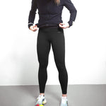 Die hohe Taille sorgt für eine schmeichelhafte Passform und stellt sicher, dass die Tights sitzen, ohne zu rutschen oder zwischen Top und Taille zu spannen. Eine minimale Konstruktion mit wenigen Nähten verleiht ein klares, elegantes Erscheinungsbild und reduziert Hautreizungen.
