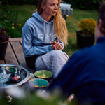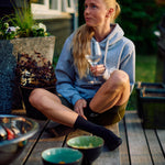 Trøjen har kængurulomme som går ned over ribben, det gør lommen en smule større og det giver trøjen en fin detalje som du ikke ser på vores andre sweatshirts. Lommen og lommeåbningen er syet på med flatlock. Der er trenser foroven og forneden i lommeåbningen for at gør lommen stærkere.